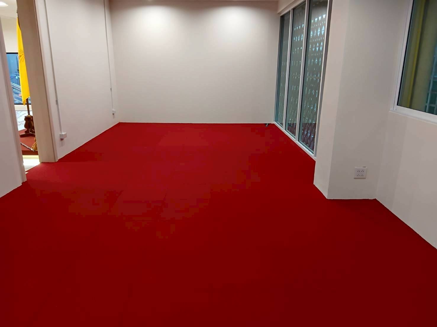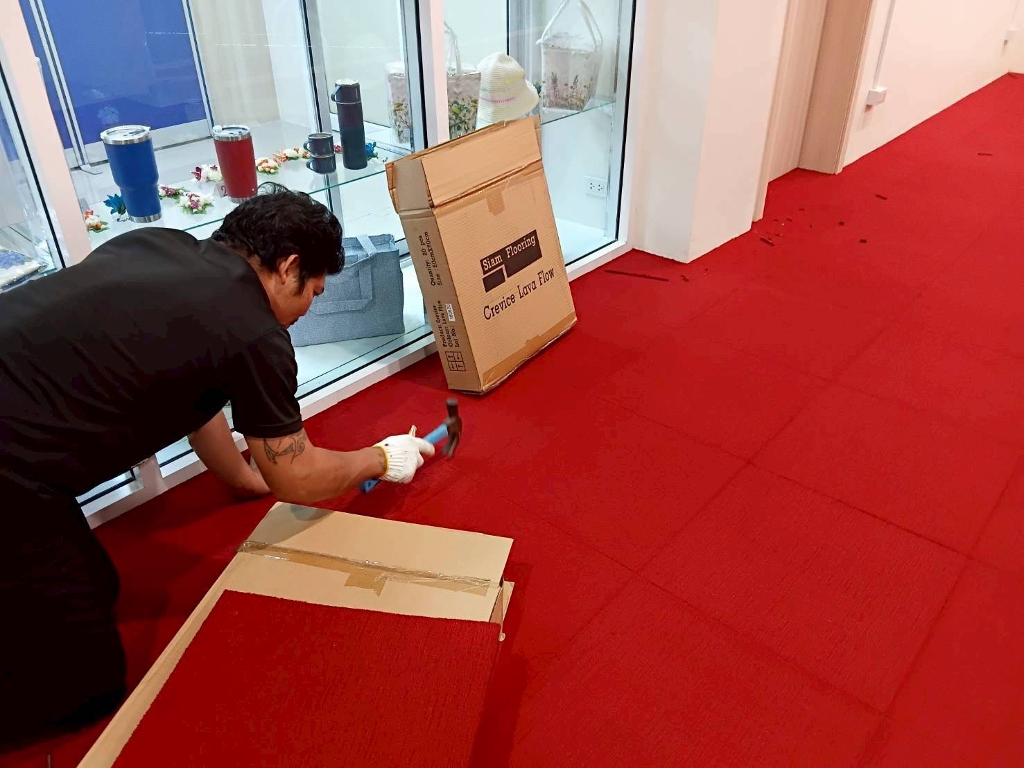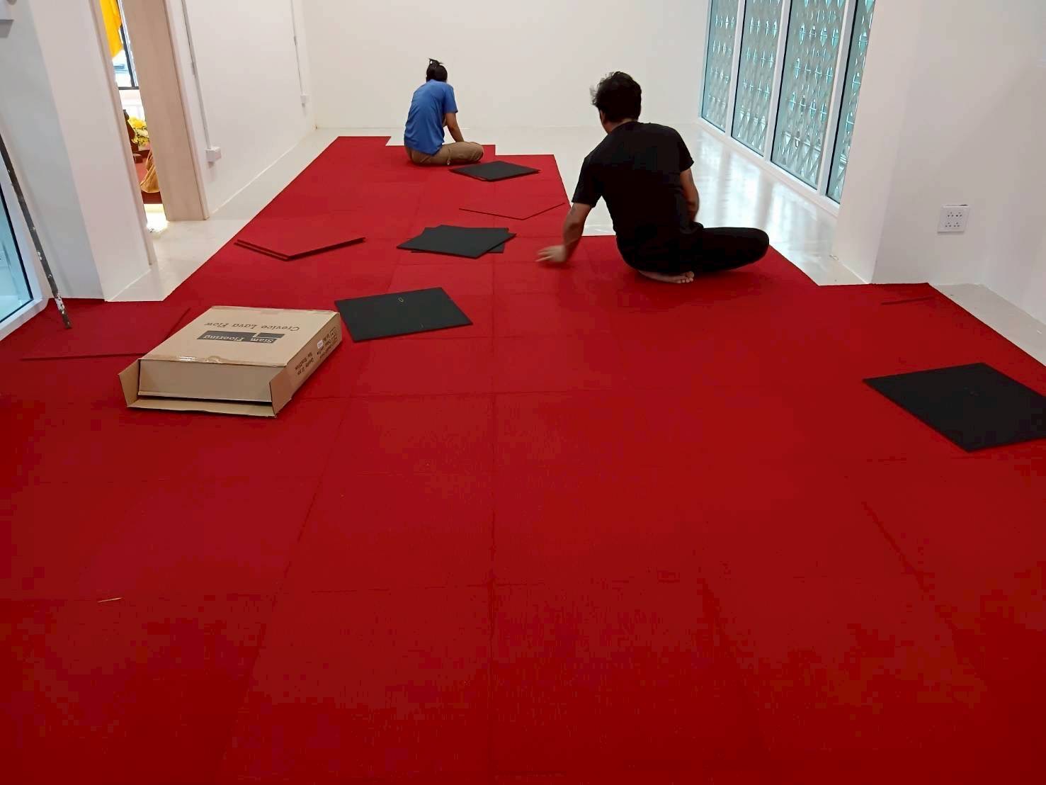 The installation of red carpet. Crevice Range in Lava Flow colour were installed in only a few hours on a well-prepared and smooth surface